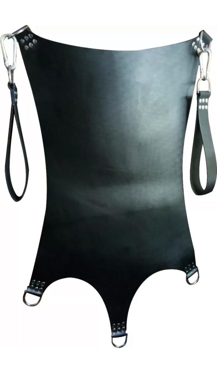 Its wide panels distribute weight evenly, while heavy-duty metal D-rings ensure secure attachment to chains or mounts. Whether used in a private dungeon or professional space, this sling is trusted by dominants and submissives alike for its reliable construction and seductive aesthetic.