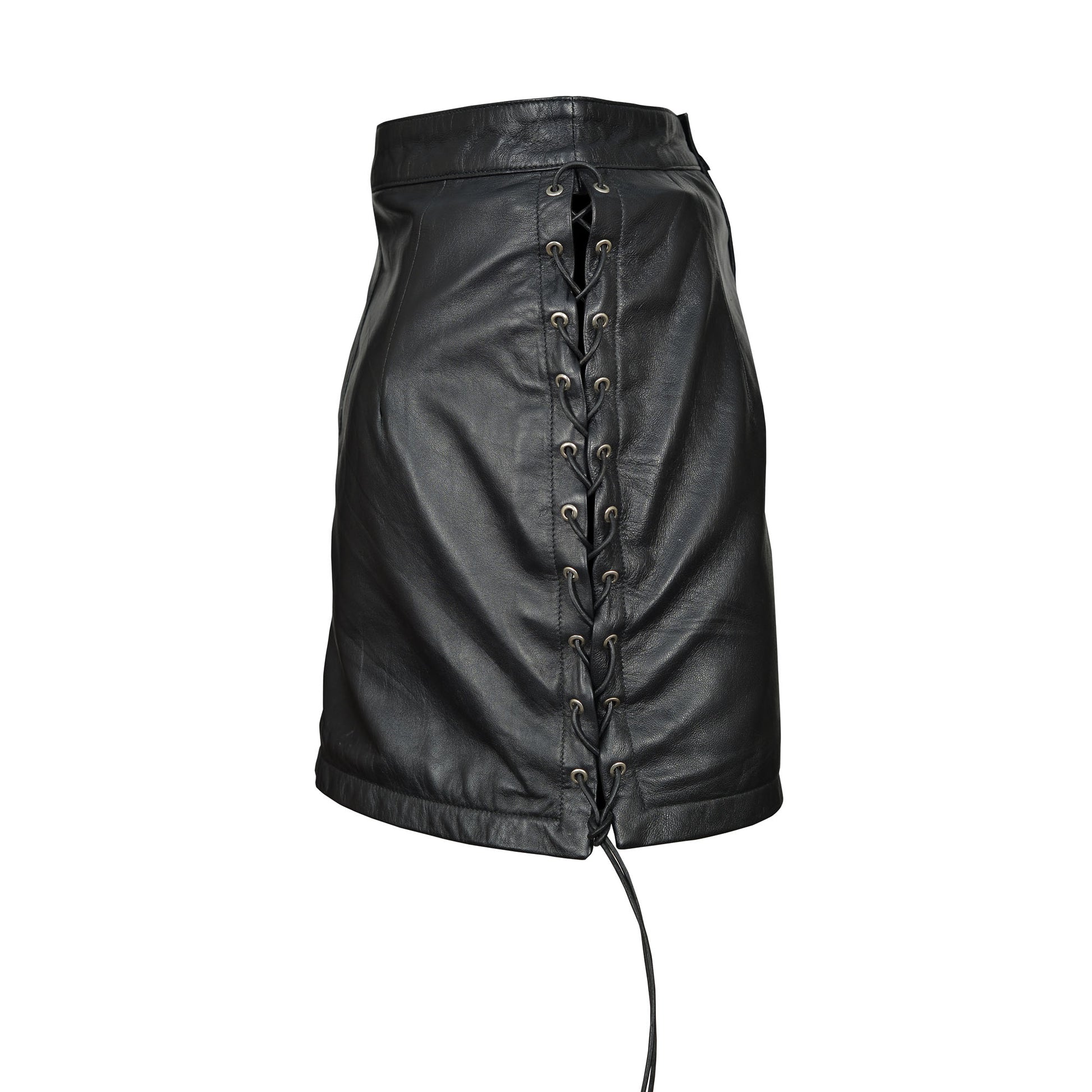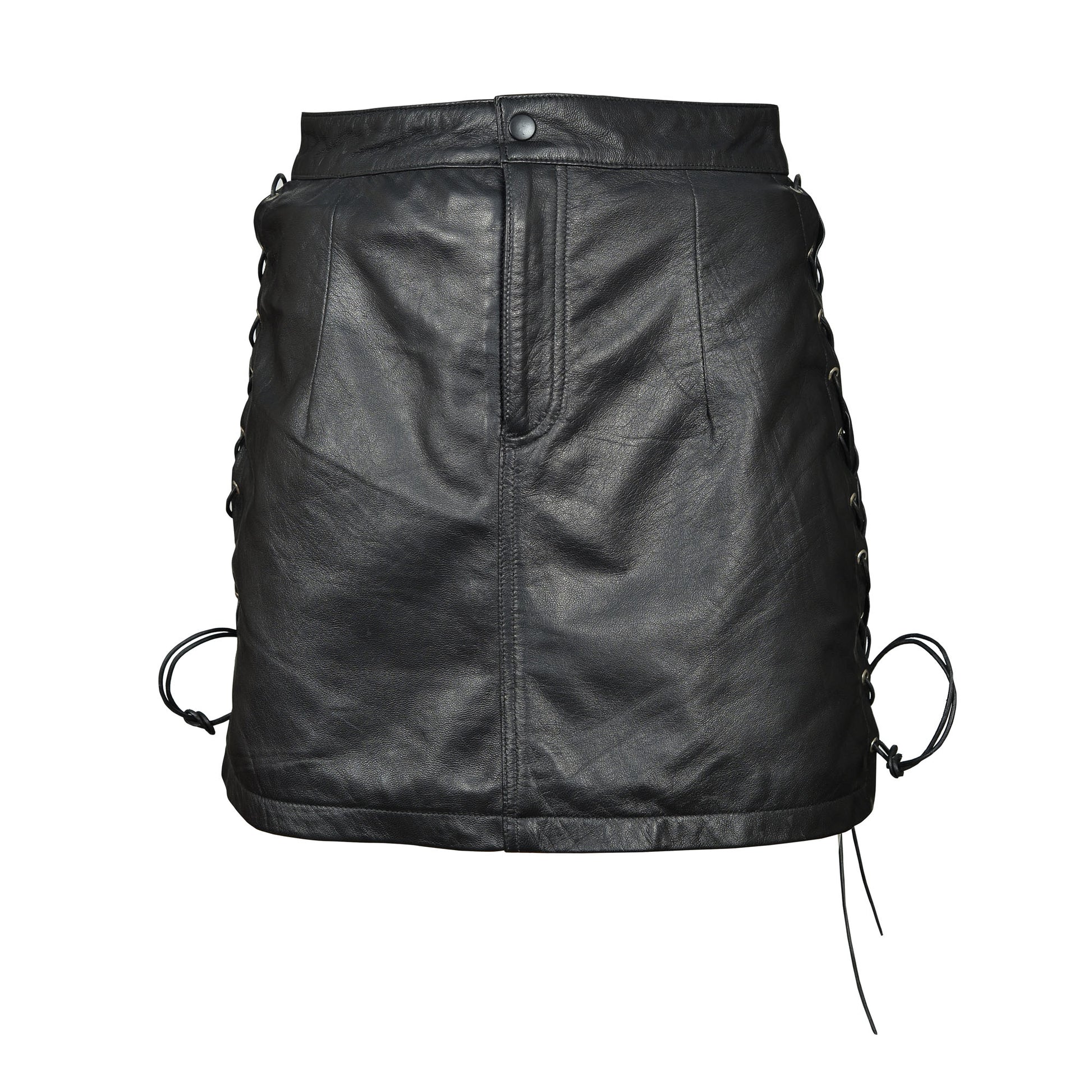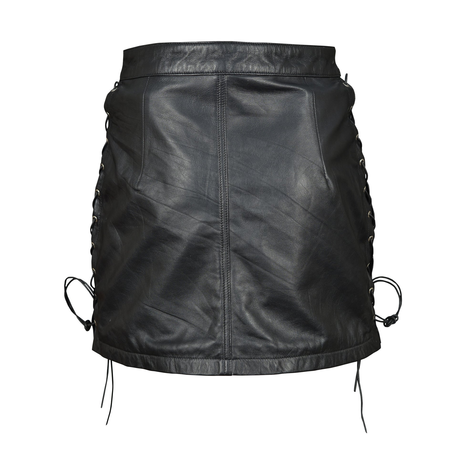 Bold & Flirty Design – Ultra-short leather mini skirt with adjustable side lace-ups for an alluring silhouette.